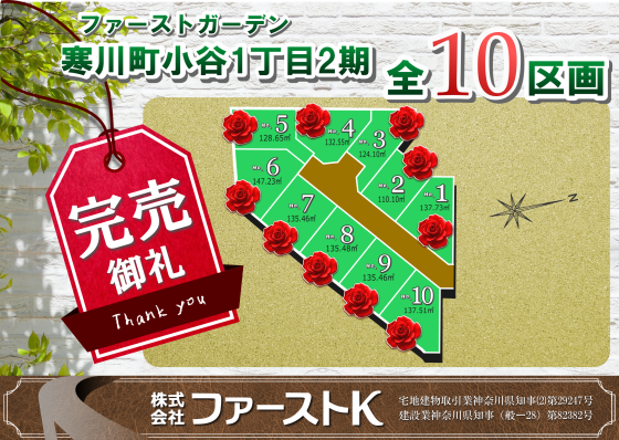 | 備考 | ・ 開発許可番号:神奈川指令厚土東第60085号 ・登記関係は売主指定の司法書士となります ・現況と図面に相違がある場合は現況優先とします |
