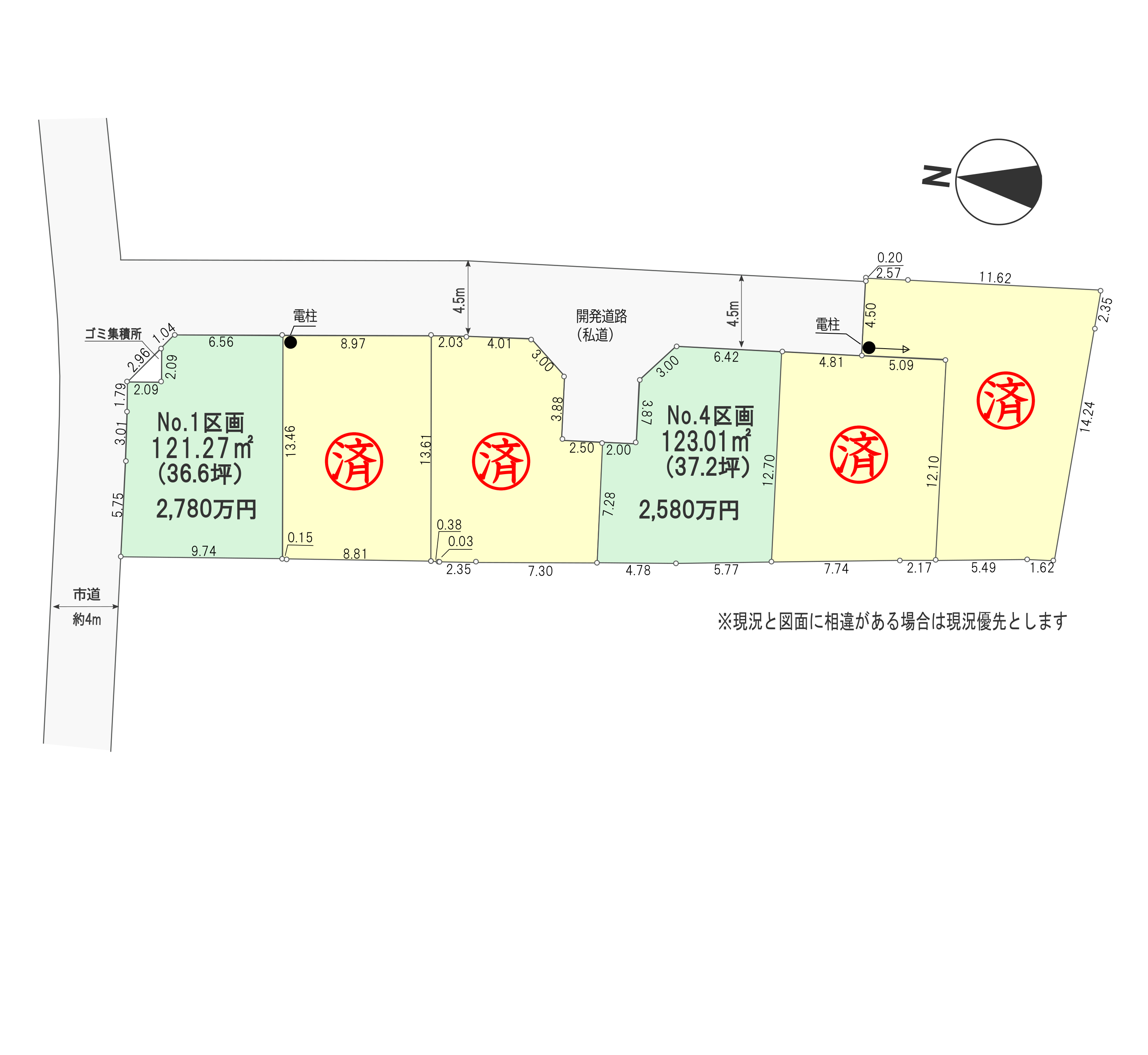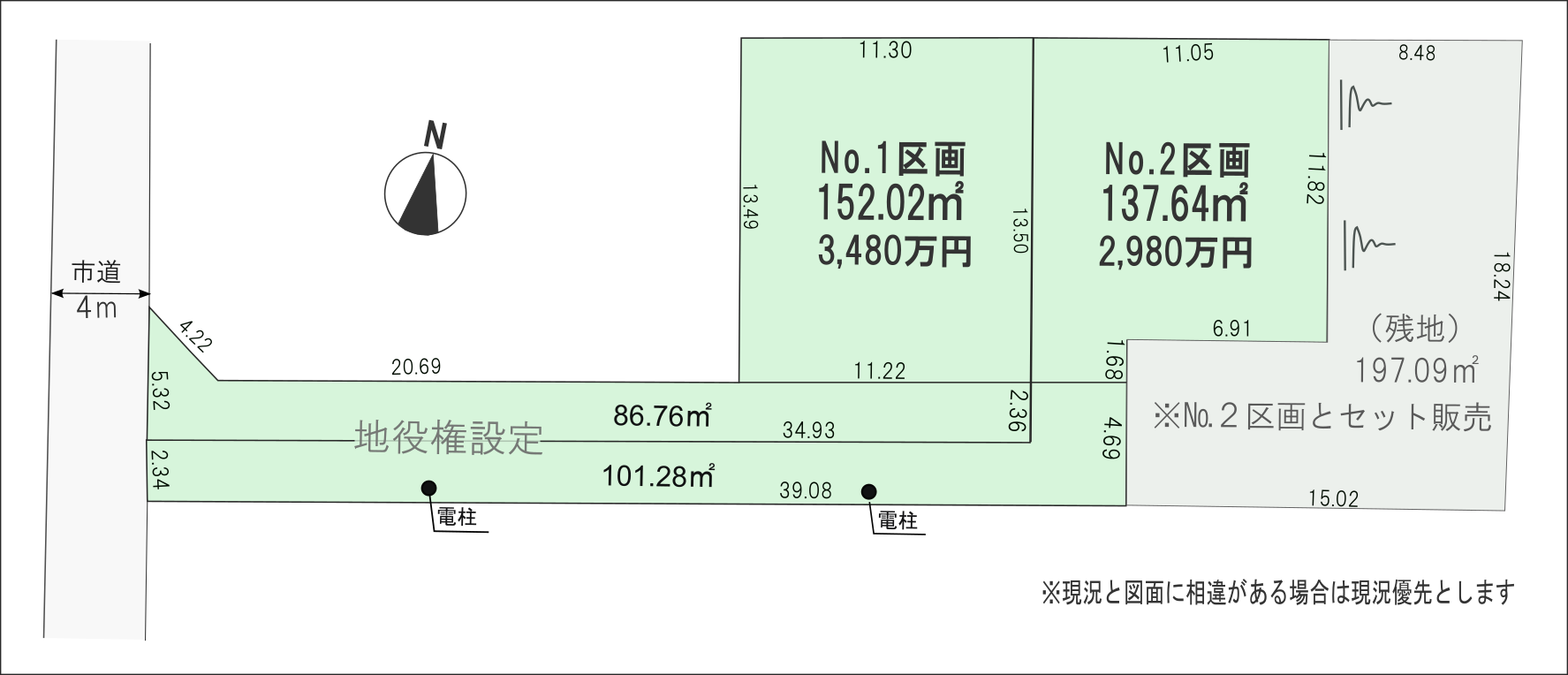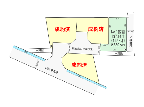 | 1 | 61.78㎡ | 880万円 | 他道路部分9.98㎡ |