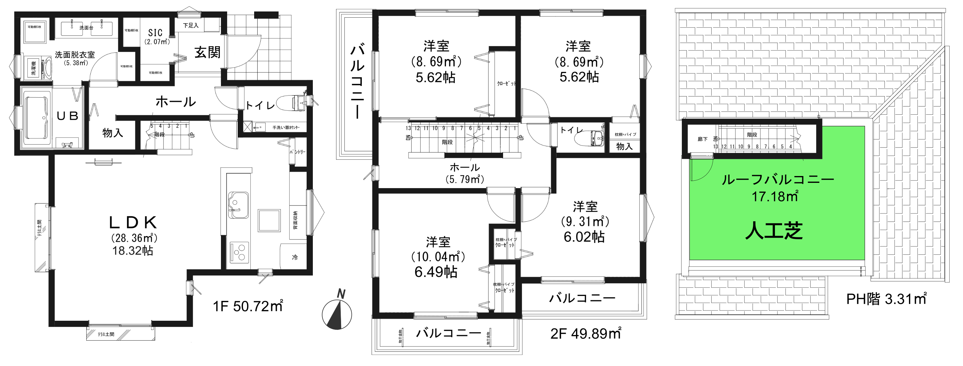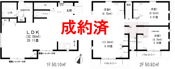| 建物面積 | 97.70㎡(29.55坪)1F:48.02㎡ 2F:49.68㎡ |