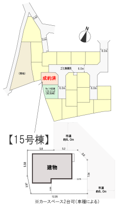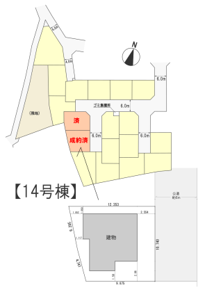 | 1 | 61.78㎡ | ご成約いただきました | 他道路部分9.98㎡ |