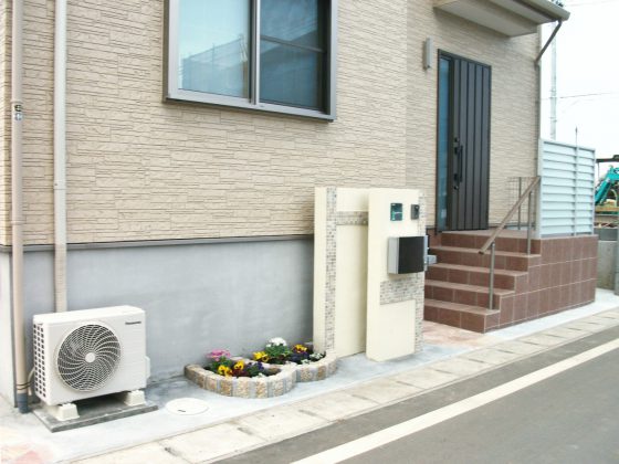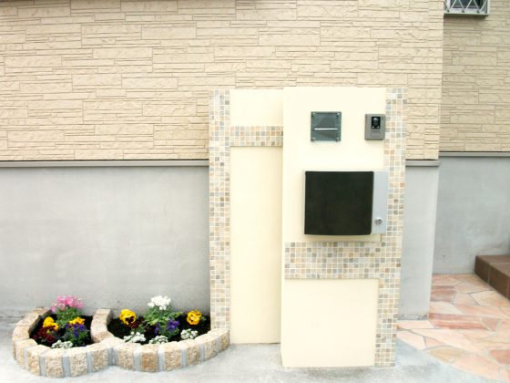 #オープン#ヨーロピアン #塗り門塀#モザイクタイル#目隠し#ルーバーフェンス#手すり #植栽#ピンコロ花壇#化粧ブロック花壇