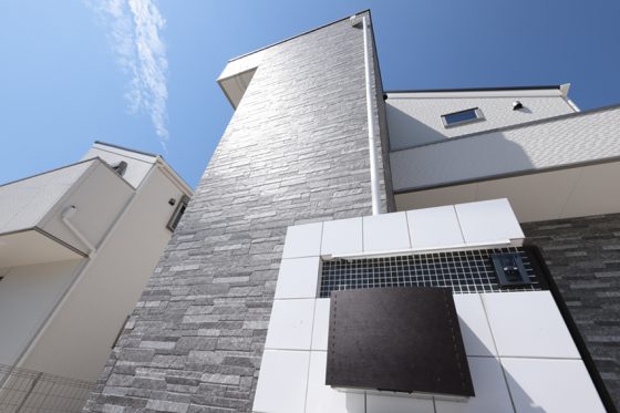 #タイル貼門塀#壁付ポスト#宅配ボックス#ラインライト#モザイクタイル・200角タイル貼り#角柱 #方形石貼り#化粧砂利#レンガライン#砂利ライン #化粧ブロック#空洞レンガ#メッシュフェンス#シマトネリコ#コルジリネ