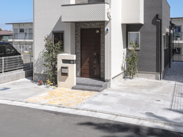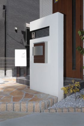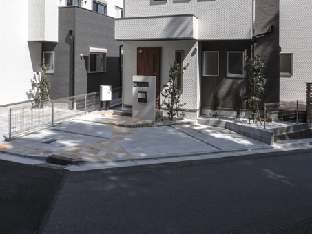 #塗り門塀#壁付ポスト#モザイクタイル貼り#ラインライト#宅配ボックス #乱形石貼#化粧砂利#ピンコロライン#砂利ライン#化粧ブロック#メッシュフェンス #ピンコロ花壇#コニファー#ヤマボウシ#ソヨゴ #天然木デッキ#アマゾンジャラ#デッキフェンス#目隠し