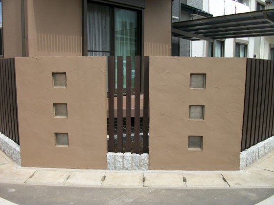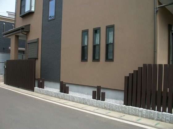#塗装塀#ガラスブロック#化粧砂利#ピンコロライン #目隠し#角柱#目隠しフェンス(縦格子)#ピンコロ#カーポート#ピンコロ花壇 #人工木デッキ#ステップ#坪庭#車庫スペース#カーポート