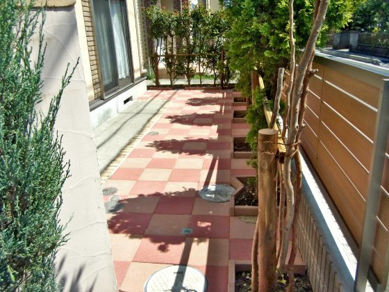 #インターロッキング#レンガライン#レンガ小端立て #化粧ブロック#目隠し#形材フェンス(木調)(横スリット) #レンガ花壇#コニファー