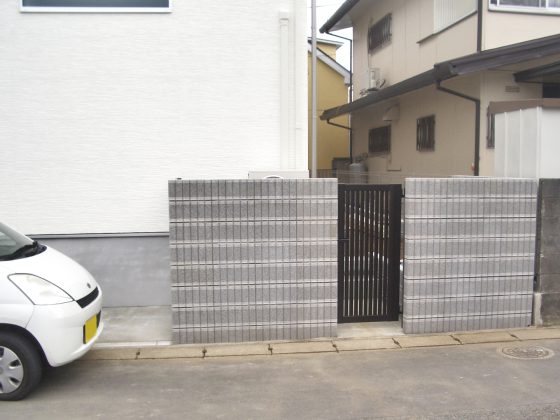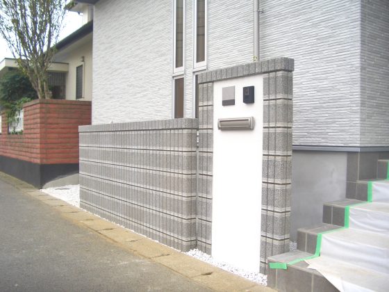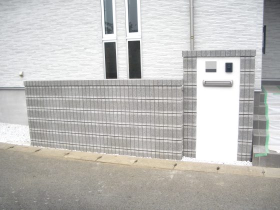 #化粧ブロック+塗り門塀#笠木#口金ポスト #砂利ライン#伸縮目地 #化粧ブロック#メッシュフェンス#アルミ形材門扉#埋込ポール #シンボルツリー#人工木デッキ