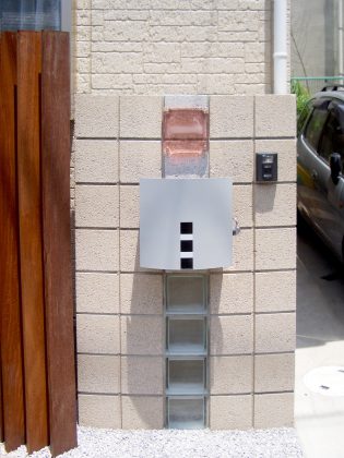 #セミクローズ#ナチュラル #目隠し#角柱 #化粧ブロック門塀#ガラスブロック#壁付ポスト #ピンコロ花壇#植栽
