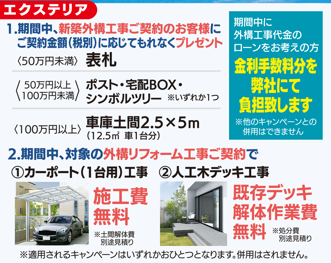 期間中にご契約の工事で外構工事代金のローンをお組の方