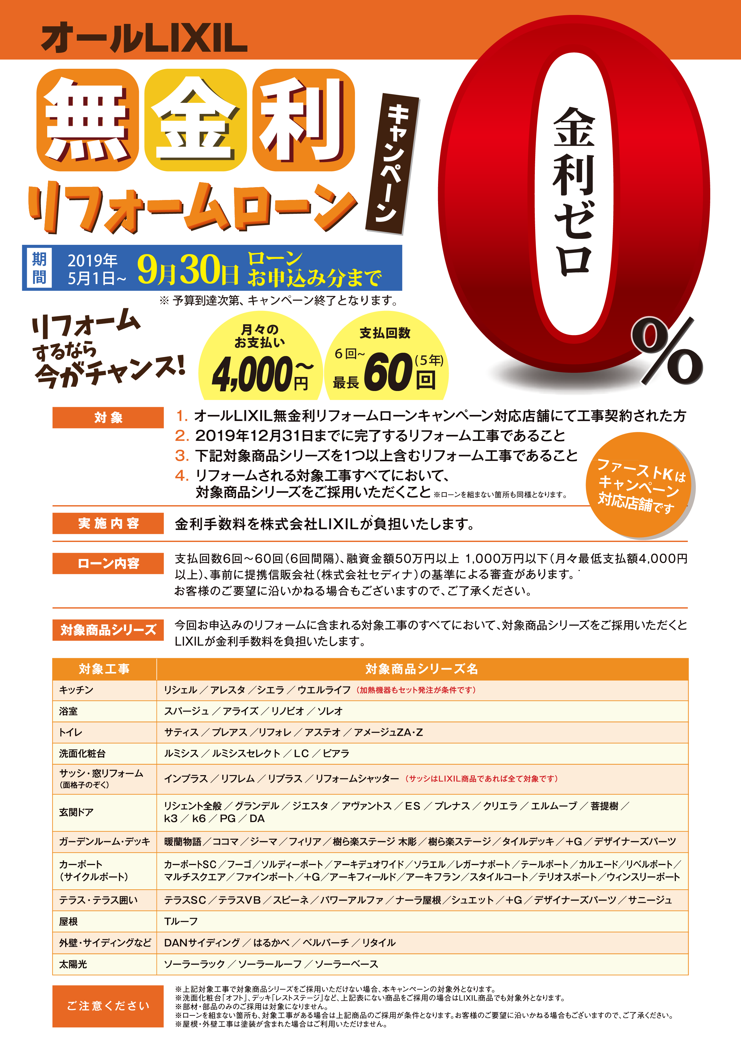 5月1日よりオールLIXIL無金利リフォームローンキャンペーンスタート!!