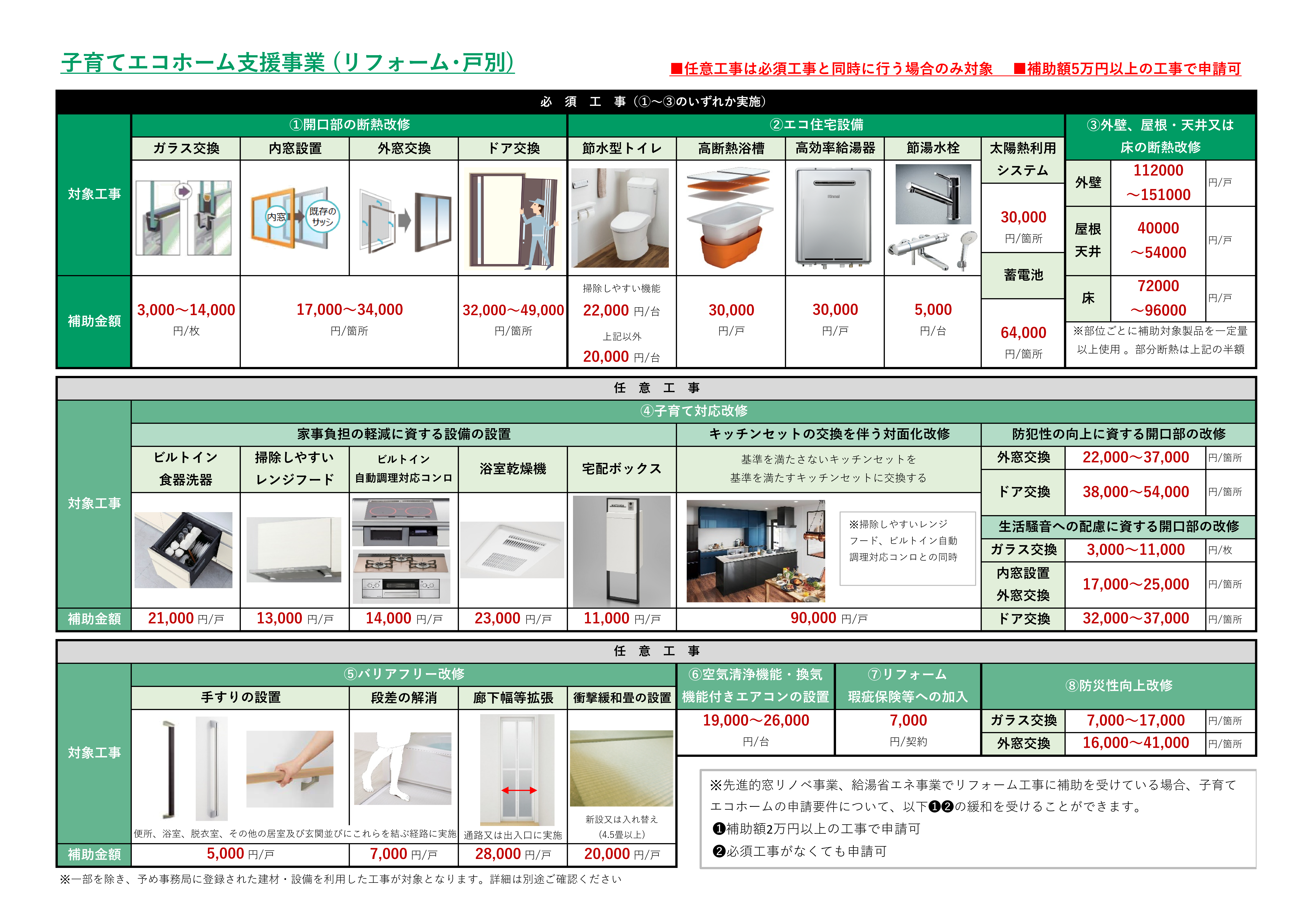 対象製品の基準等 事業内容の詳細は ≫子育てエコホーム支援事業 事務局HP をご確認下さい |