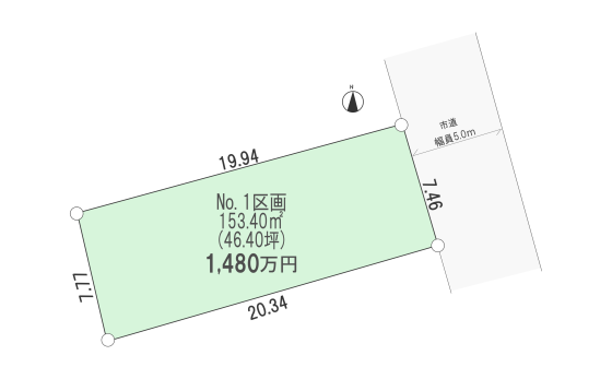 | 接道状況 | 北側約5m公道に約7.46m接道 |